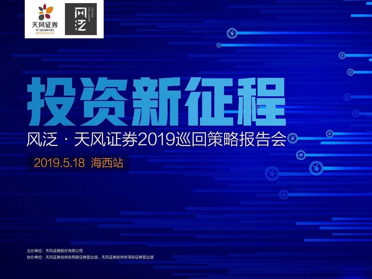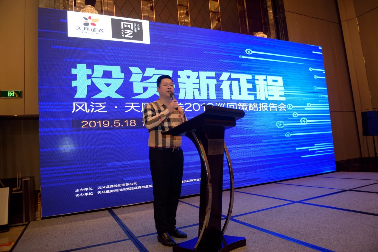 2019年5月18日下午,“风泛?投资新征程”天风证券2019巡回策略报告会海西站在泉州市万达文华酒店圆满举行。本次策略会由天风证券国家级投资者教育基地主办,天风证券泉州泉秀路证券营业部联合主办。