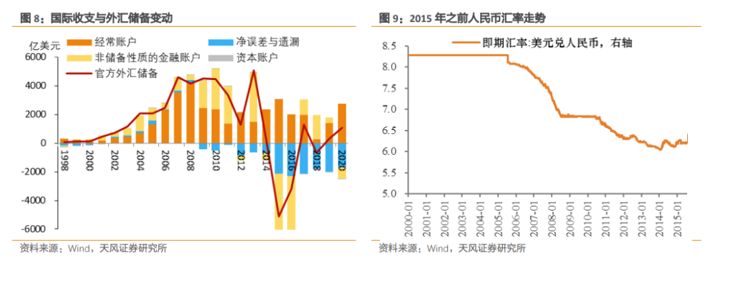 2001年我国加入WTO之后,国际收支下的经常账户和资本金融账户的顺差增长加快,叠加强制结售汇制度推动外汇储备快速增长。一方面,由于当时我国政府对扩大出口、引入外资的支持,对资本流出则有一定限制,结合当时实施的强制结售汇制度(强制结售汇制度是外汇短缺时代的产物,建立于1994年。当时要求企业的经常项目外汇收入,除国家允许开立外汇账户予以保留的外,均应全部卖给外汇指定银行),大量外汇流入我国金融体系。另一方面,由于当时人民币采用固定汇率制度,为了维护固定汇率客观上央行需要大规模购入外汇并投放人民币流动性。这些因素都导致外汇储备和外汇占款的迅速增长(2007年一季度《货币政策执行报告》)。
