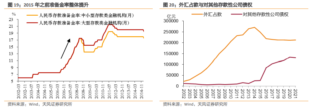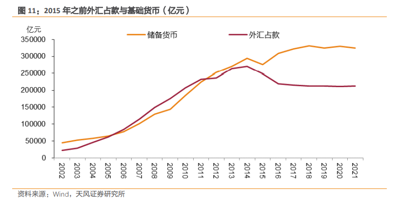 总结来看,2014年下半年之前我国外汇储备/外汇占款规模基本在持续增长,推动央行扩表。