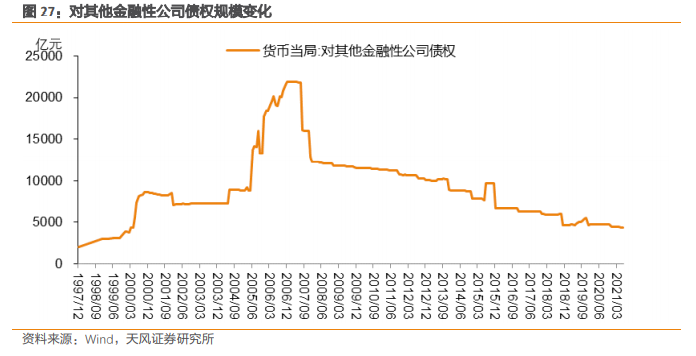 2004-2007 年间,央行对其他金融性公司债权出现较大增幅,主要有两个原因: