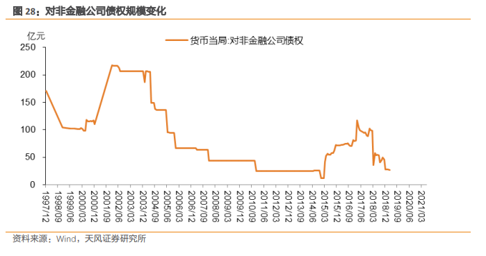 对非金融性公司债权主要是央行支持落后地区经济开发所发放的贷款,目前占央行总资产的比例不足万分之一。