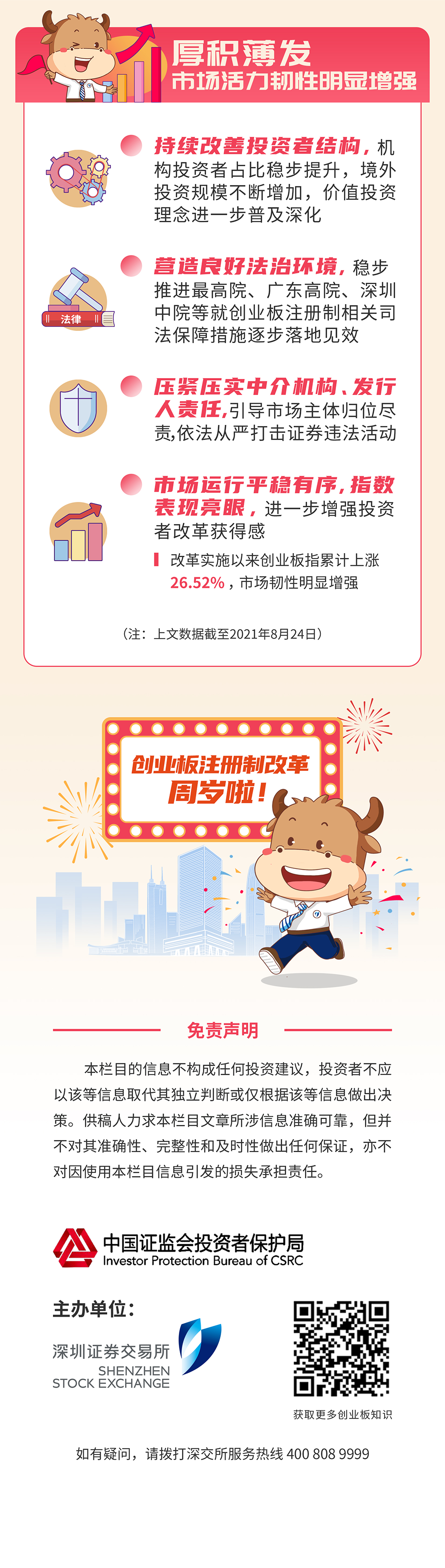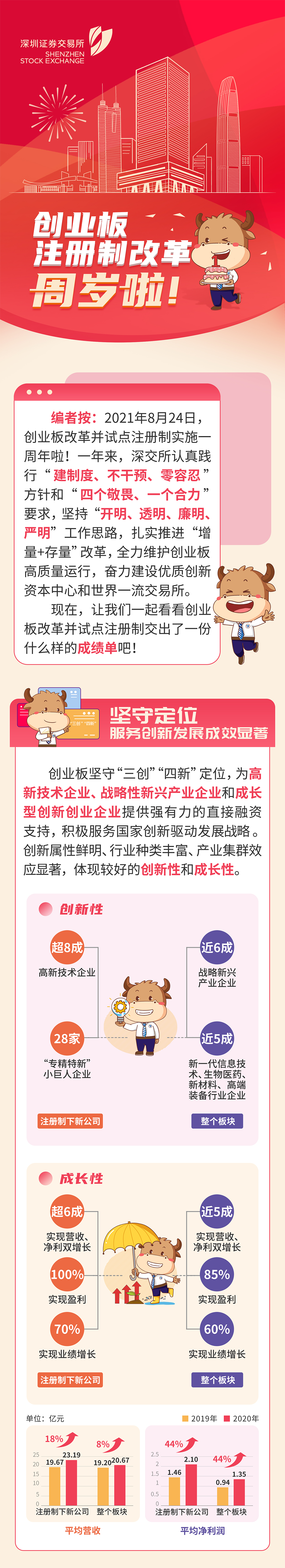 2021年8月24日,创业板改革并试点注册制实施一周年啦!一年来,创业板注册制交出了一份什么样的成绩单?让我们一起看看吧!