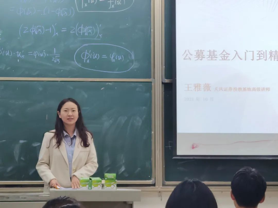 10月12日, “世界投资者周·天风证券投资者教育走进高校”主题活动在武汉华夏理工学院举行。天风证券投教基地高级讲师王雅薇为高校的同学们带来了以《公募基金,从入门到精通》为名的专题讲座。来自武汉华夏理工学院商学院、生物与制药工程学院等多个院系的百余名学生到场参与课程学习。