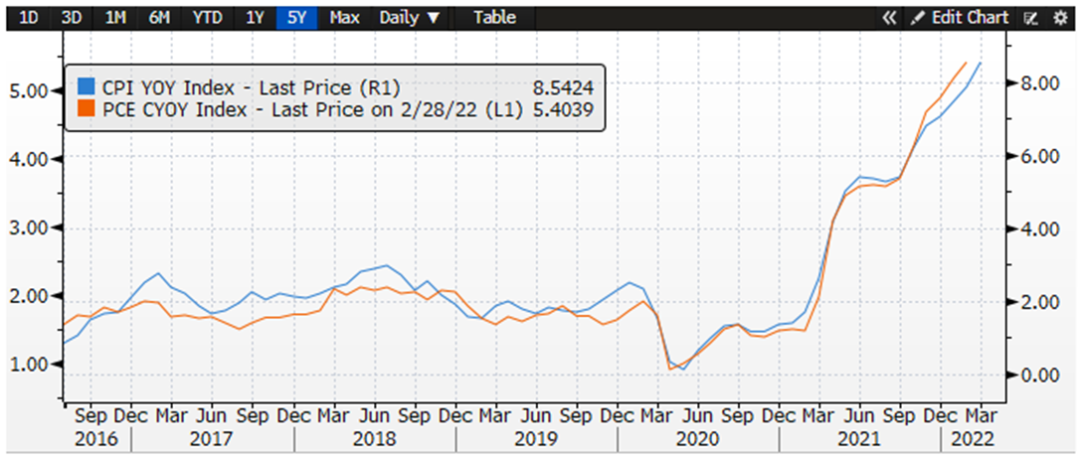 图2:通胀与核心PCE的走势