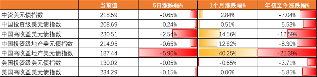 表4:全球债券及中资美元债指数表现