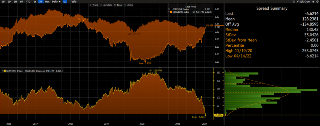 图4:中美10年期利差走势图