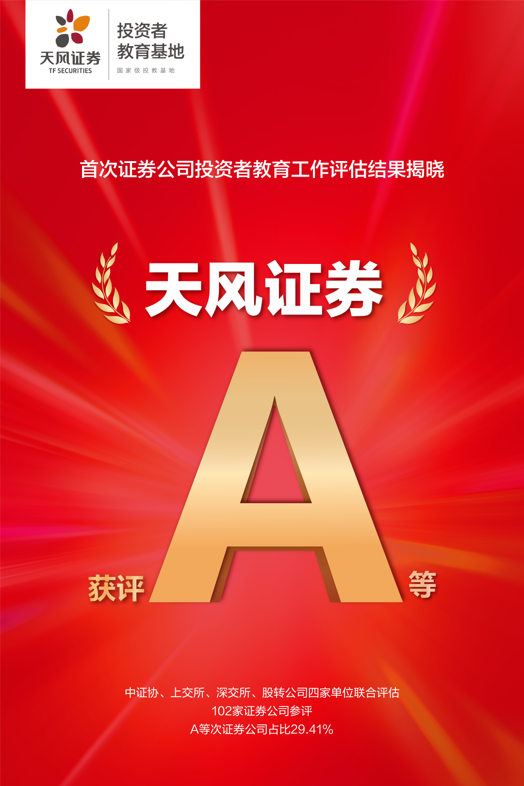 7月27日,中国证券业协会、上海证券交易所、深圳证券交易所、全国股转公司联合发布了2022年证券公司投资者教育工作评估结果,天风证券获评A等次。此次评估是中国证券业协会、上交所、深交所、全国股转公司四家单位联合开展的首次证券公司投资者教育工作评估,参与评估的共102家证券公司,其中评估结果为A等次的公司共30家。下一步,天风证券将进一步加大原创投教产品投入,制作内容科学准确、形式新颖、通俗易懂、时效性强的投教产品,组织开展普惠性、公益性、实效性的投资者教育活动,同时进一步加大推广力度,主动与交易所、协会、大众媒体等加强合作,力争与各界合力把投教基地宣传出去,把投资技能传授出去,把投资知识传播出去,不断扩大投教产品的受众面,切实提升投资者的体验和获得感。