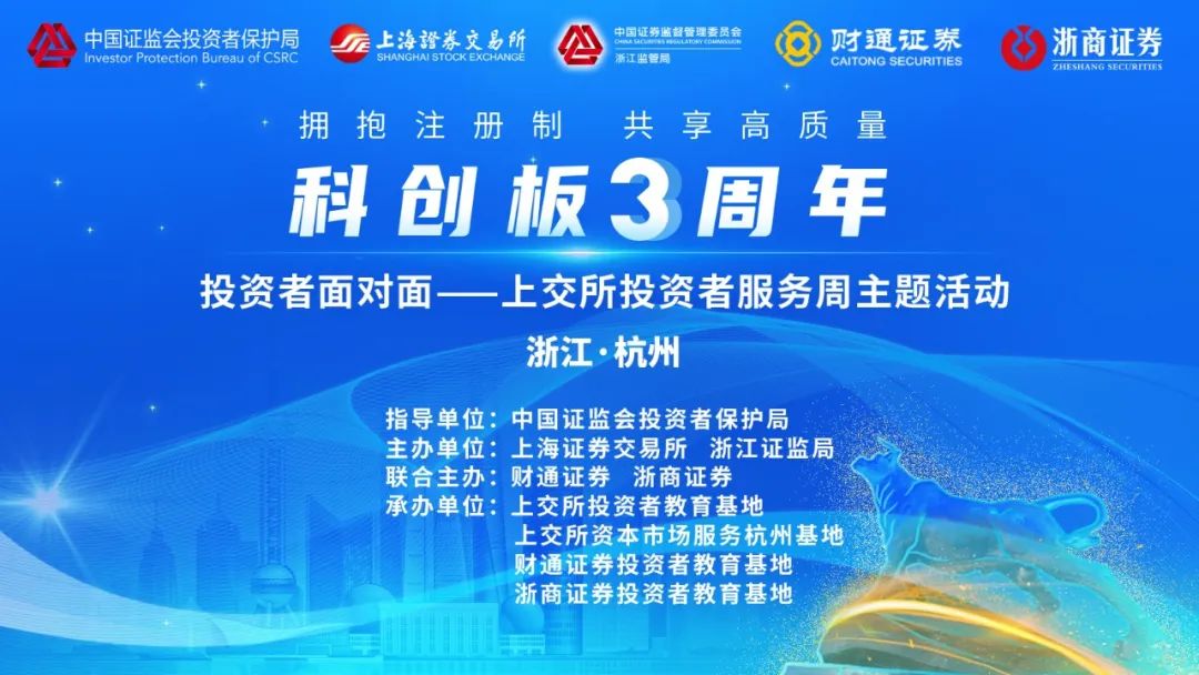 作为上交所资本市场服务周浙江行与金融知识普及月专题活动的重要安排之一,上交所投资者服务周积极贯彻落实资本市场人民性要求,深入走近浙江地区投资者,举办“投资者面对面”主题座谈、开展“科创板三周年”主题宣讲、组织“我是股东”中小投资者走进科创板公司活动,通俗易懂讲好上交所市场高质量发展故事的同时,面向广大投资者普及了金融证券知识,引导其树立理性投资、价值投资、长期投资理念,助力浙江地区资本市场高质量发展。