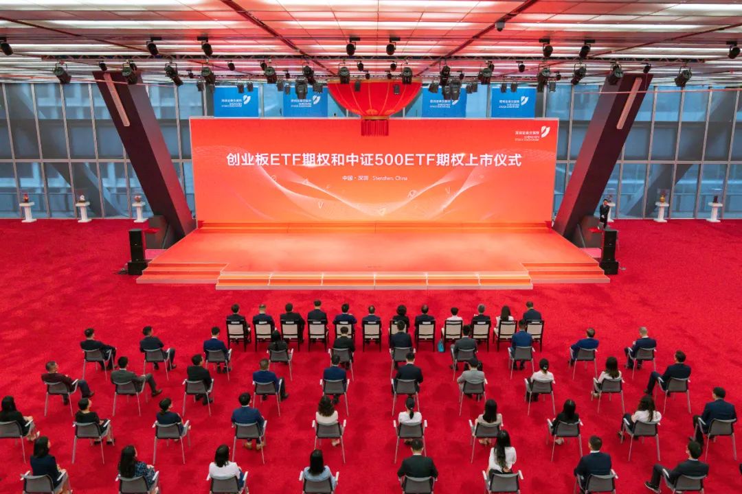 2022年9月19日,深市创业板ETF期权(标的为创业板ETF,代码159915)和中证500ETF期权(标的为中证500ETF,代码159922)平稳上市交易。深交所理事长陈华平出席上市仪式,中国证监会市场一部主任张望军、深圳市委常委曾湃视频致辞,深交所总经理沙雁现场致辞。来自证监会系统、深圳市金融局和相关市场机构的领导和嘉宾参会,共同见证深交所衍生品市场又一重要时刻。