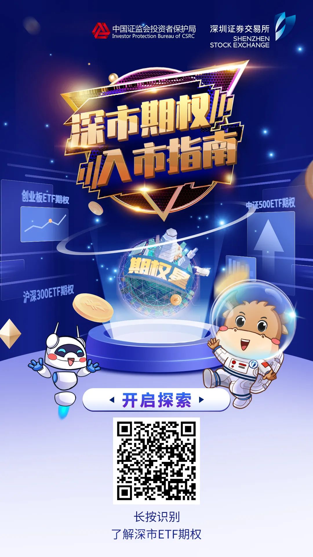 编者按:9月19日,深市期权新品种——创业板ETF期权(标的为易方达创业板ETF,代码159915)、中证500ETF期权(标的为嘉实中证500ETF,代码159922)上市交易。为帮助投资者深入了解期权产品特征和深市期权新品种特色,深交所推出“深市期权入市指南”H5,欢迎扫描下方二维码或点击“阅读原文”,和牛牛一起进入“期权星”的世界吧!