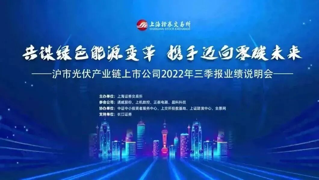 2022年11月23日下午,沪市光伏产业链上市公司召开了以“共谋绿色能源变革 携手迈向零碳未来”为主题的三季报集体业绩说明会。