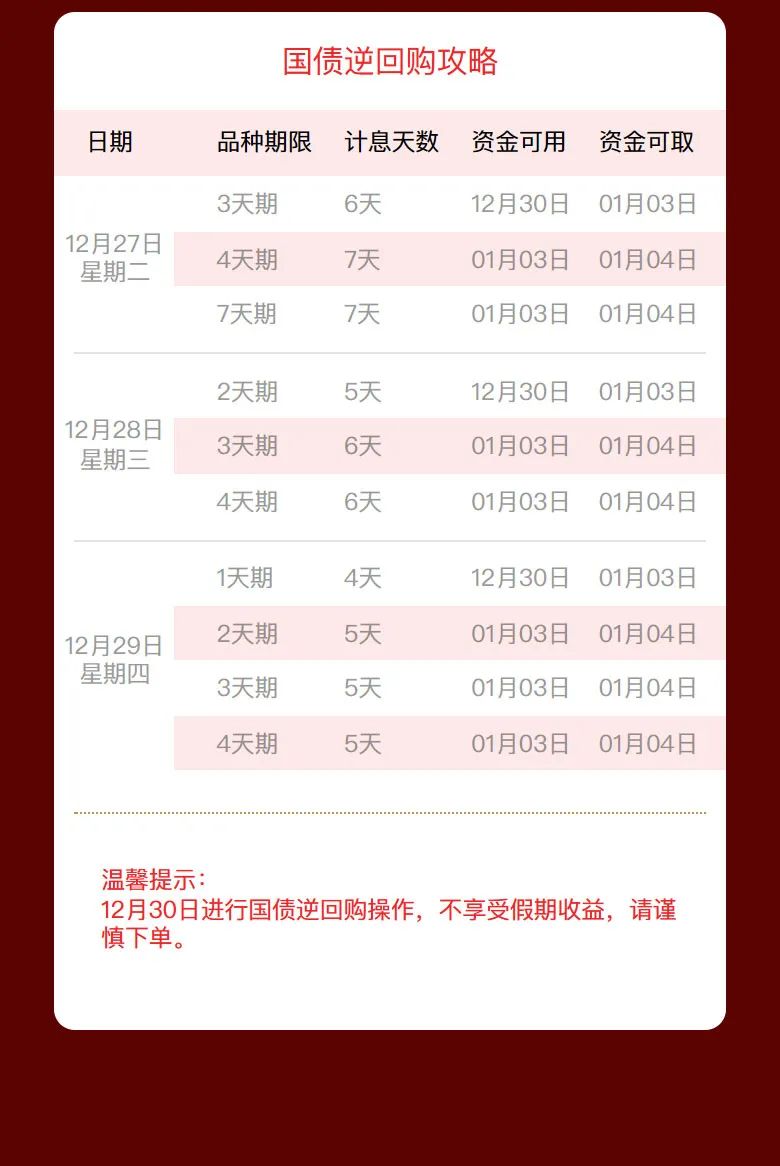 元旦休市安排表(附国债逆回购攻略)
