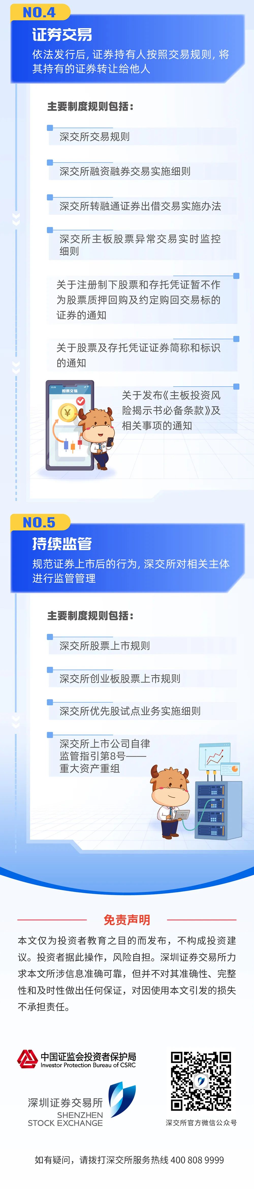 为帮助投资者更好理解全面实行注册制的重要意义和主要内容,深交所投资者服务部特别推出“聚焦全面实行注册制”系列图文解读。本篇介绍全面实行注册制主要制度规则体系,一起来看看吧!