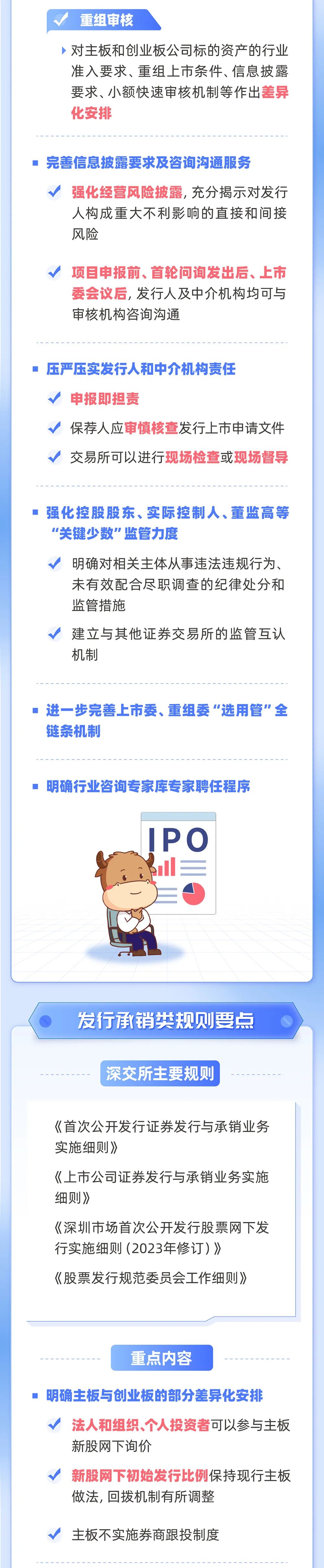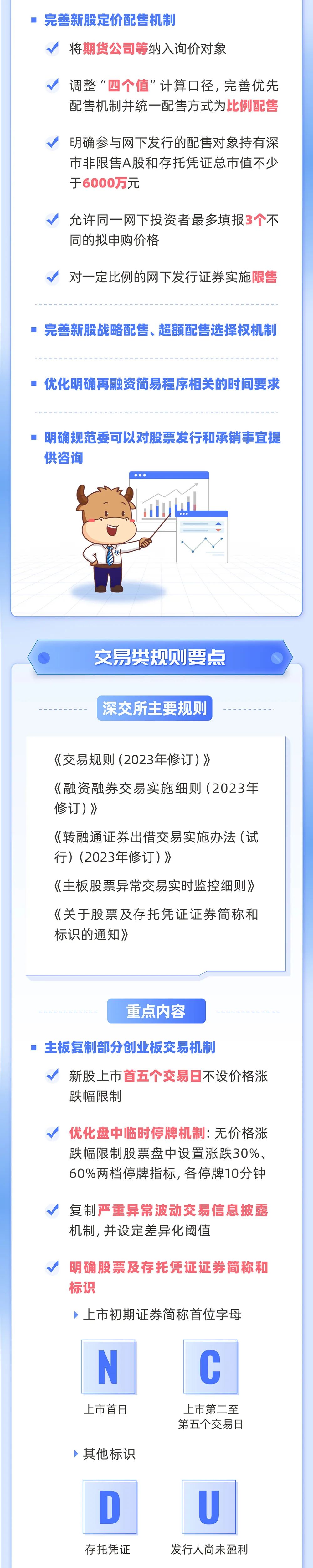 为帮助投资者更好理解全面实行注册制的重要意义和主要内容,深交所投资者服务部特别推出“聚焦全面实行注册制”系列图文解读。本篇介绍全面实行注册制深交所发行上市审核类、发行承销类、交易类、持续监管类主要制度规则要点,一起来看看吧!
