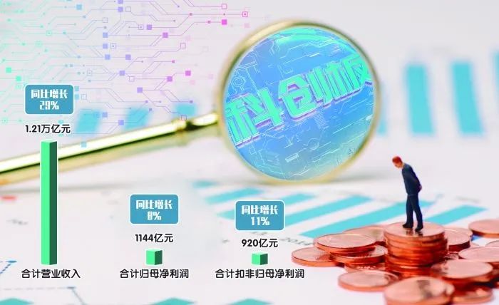 据上海证券报记者统计,科创板公司预计2022年营业收入合计将达1.21万亿元,同比增长29%;归母净利润合计1144亿元,同比增长8%;扣非归母净利润合计920亿元,同比增长11%。考虑到科创板允许无收入和无盈利企业上市,在剔除47家未盈利上市企业后,板块整体营业收入、归母净利润和扣非归母净利润的增幅分别为30%、13%和14%。