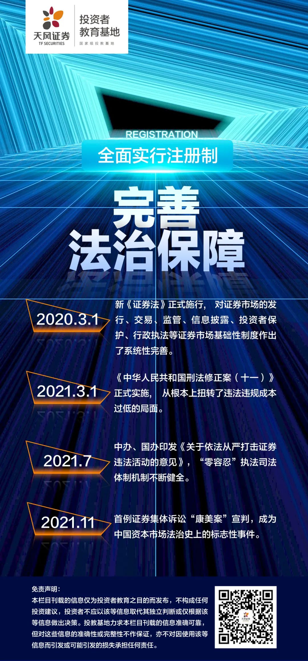2023年2月17日,全面注册制正式实施。为做好全面实行股票发行注册制投资者教育保护工作,维护广大投资者合法权益,天风证券投教基地特别开展“全面注册制,改革向未来”主题投资者教育及3·15投资者保护主题教育活动,深化投资者对注册制内涵的理解,增进对全面实行注册制改革的认同,进一步树立理性投资、价值投资、长期投资的理念,引导投资者客观看待和理解全面实行注册制的意义和作用,理性参与投资。