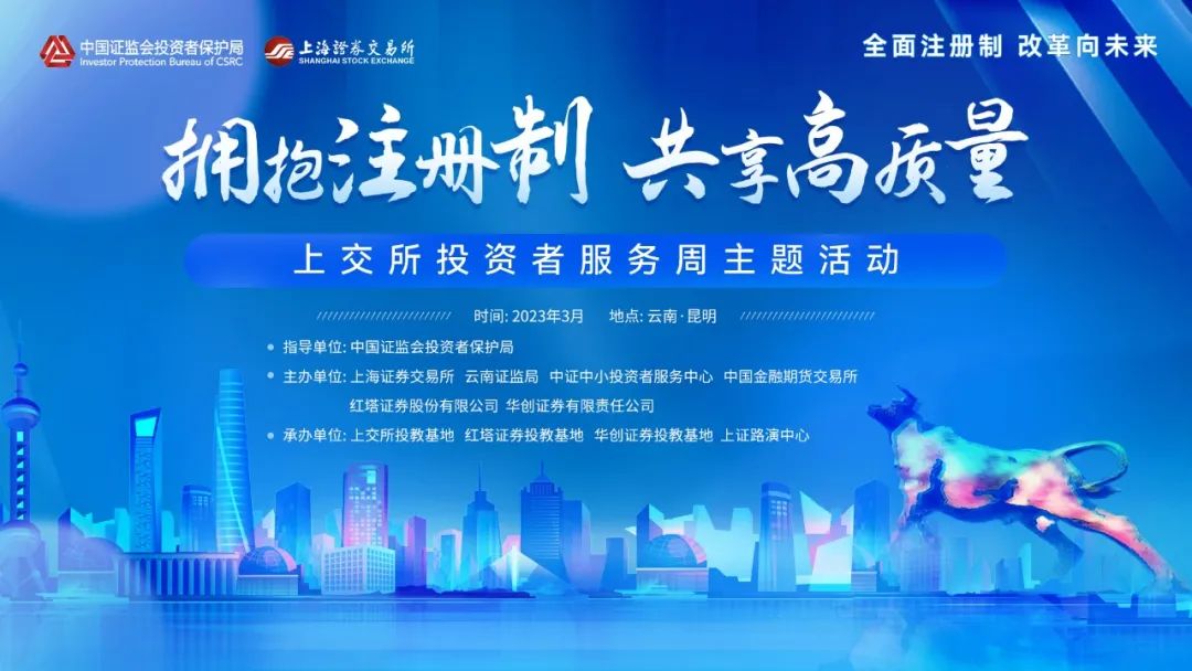 全面实行注册制之际,在中国证监会投资者保护局指导下,上海证券交易所积极开展“全面注册制 改革向未来”投资者教育专项活动,以“拥抱注册制,共享高质量”为主题,联合云南证监局、协会、中证中小投资者服务中心、中国金融期货交易所及红塔证券、华创证券,依托上交所云南资本市场服务基地,共同开展了投资者服务周云南行系列活动。