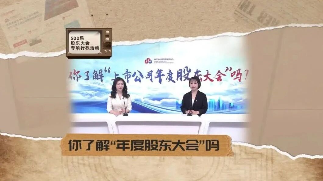 在“3·15投资者权益保护教育宣传月”来临之际,投资者服务中心即将开展500场A股上市公司2023年度股东大会专项行权活动。为更好普及权益知识,引导股东积极行权,投资者服务中心推出系列投教视频,向广大投资者介绍年度股东大会相关知识。