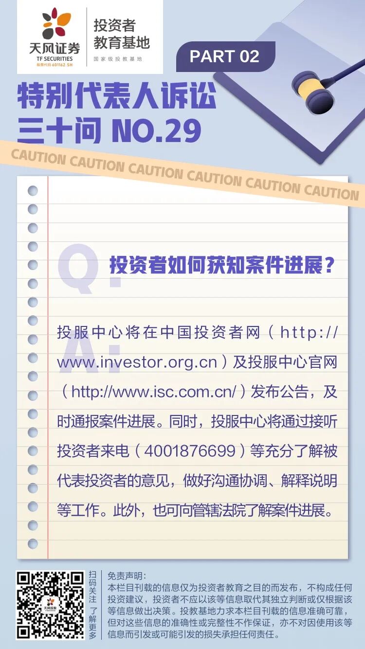 为科普和宣传证券纠纷特别代表人诉讼,天风证券投教基地推出了“特别代表人诉讼三十问”特别专题栏目,将按照投保公司发布的特别代表人诉讼相关概念、知识,每天带您了解一个要点,敬请您关注!