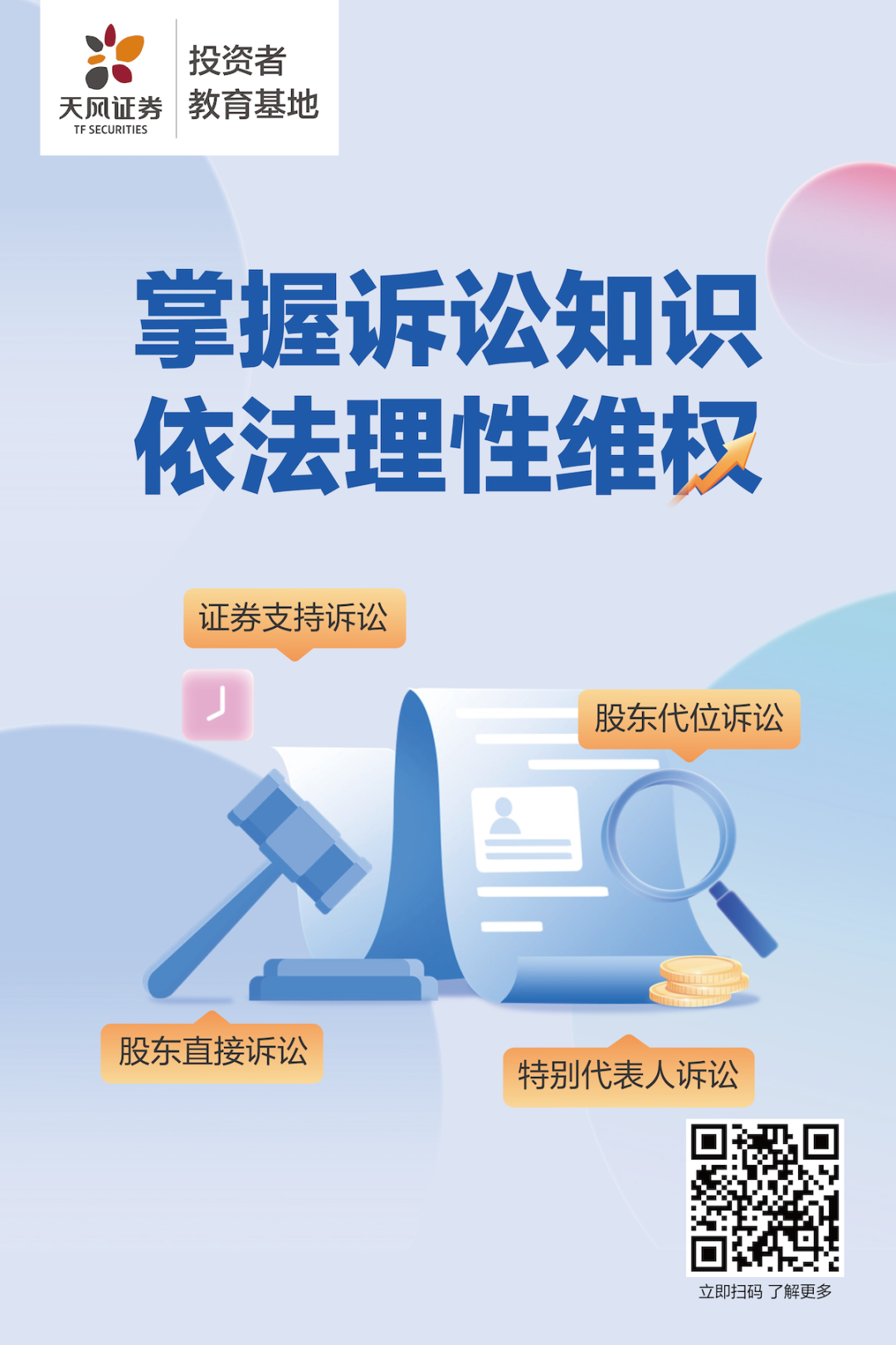 为普及诉讼解纷相关制度法规,帮助广大中小投资者更好地维护自身合法权益,天风证券投教基地特别开展投保诉讼宣传活动,带领大家学习投保机构代位诉讼、代表人诉讼等公益诉讼知识。