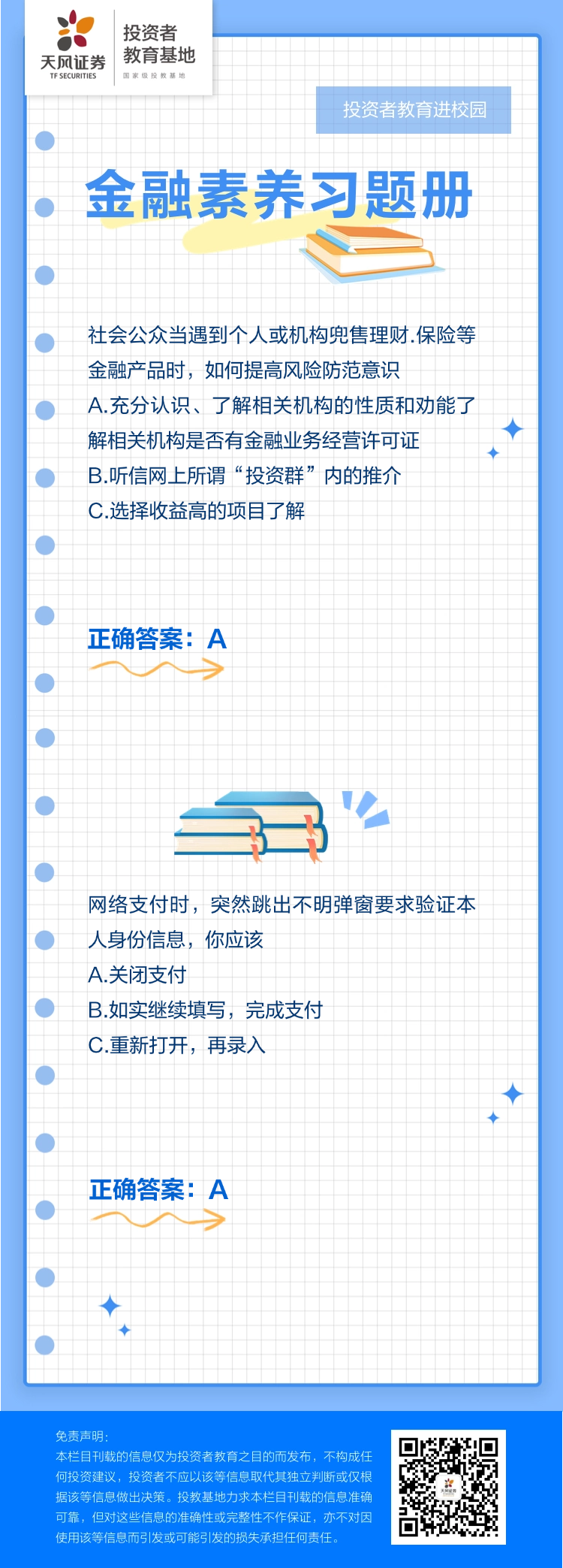 投教进校园 | 金融素养习题册(16)