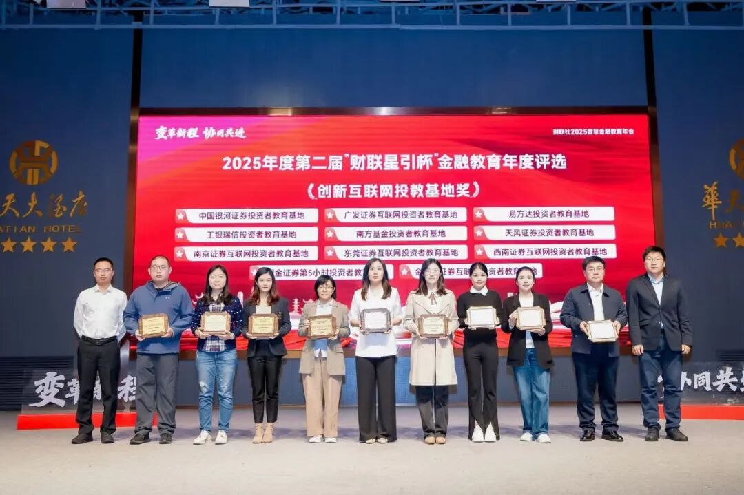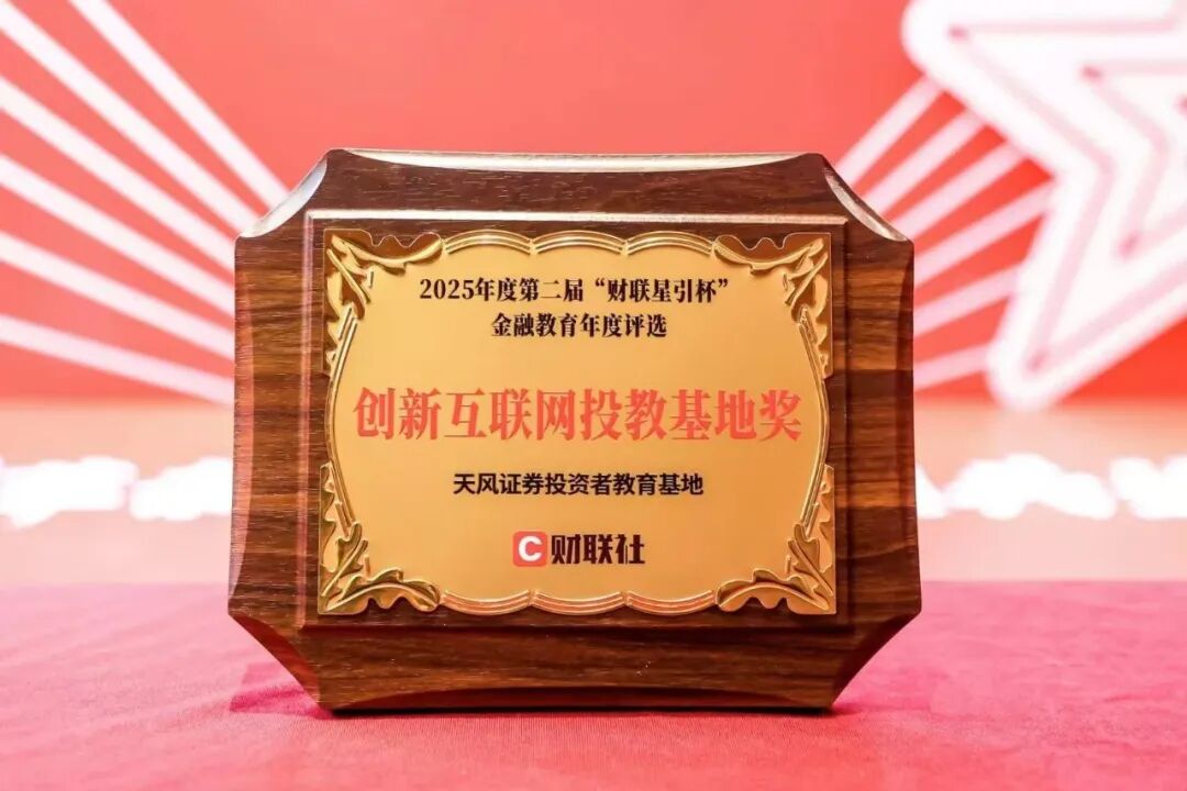 2025年10月23日,由财联社主办的2025智慧金融教育年会在湖南长沙举行,会上揭晓了财联社第二届 “财联星引杯”金融教育年度评选结果,天风证券投教基地凭借在互联网投资者教育领域的创新与成效,斩获2025年度“创新互联网投教基地奖”。 财联社第二届 “财联星引杯”金融教育年度评选覆盖银行、证券、基金等各类金融机构,以公平公正的评审机制、监管与行业专家组成的评委会确保其专业性。此次荣获“创新互联网投教基地奖”,标志着天风证券投教基地在互联网投教领域的实践成果再次获得行业媒体的权威认可。 天风证券投教工作者代表公司领奖 天风证券投教基地自成立以来,始终秉承“金融为民”的服务理念,结合专业性与趣味性,不断探索线上投教的变革新模式。基地不仅开发了形式多样的原创投教产品,还搭建了线上模拟交易、风险测评等互动场景,有效提升了金融知识学习的吸引力。下一步,天风证券将继续依托国家级投教基地,拓展传播渠道、优化投教服务方式,为投资者提供更好的产品与服务。
