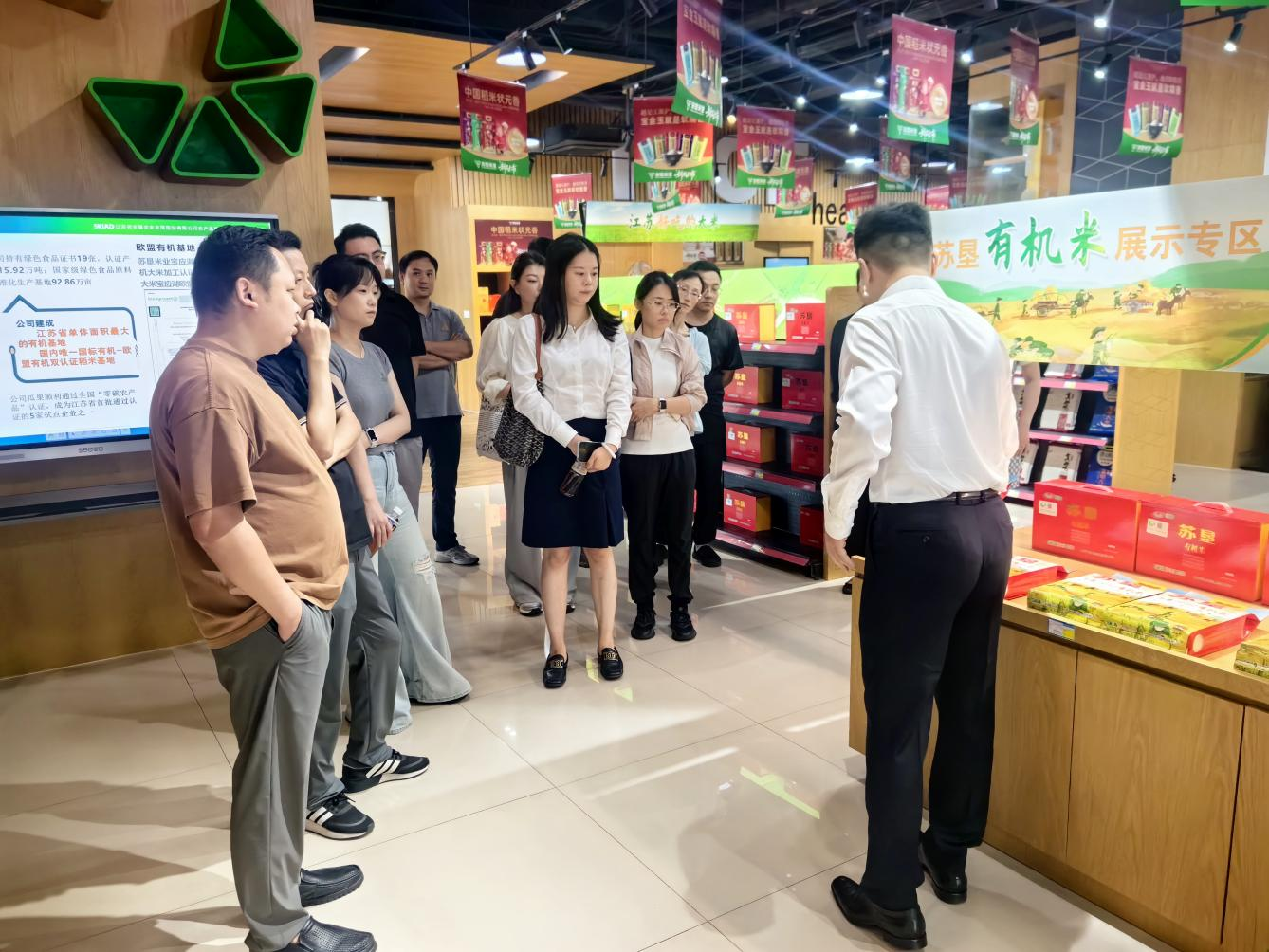 在苏垦农发董事会秘书、证券事务代表等陪同下,投资者们来到了苏垦尚膳门店。苏垦尚膳作为苏垦农发旗下专注于优质农产品销售的品牌门店,汇聚了公司自主生产的大米、食用油、锅巴等多种高品质产品。工作人员详细介绍了重点产品的生产工艺、原料来源、品质特点,让投资者们对公司的产品体系有了全面的认识。门店还精心安排了产品品鉴环节,邀请投资者们现场试吃米饭、锅巴等明星产品。通过现场品鉴,投资者切实感受到了苏垦农发产品的高品质和公司在农产品质量把控方面所做的努力。