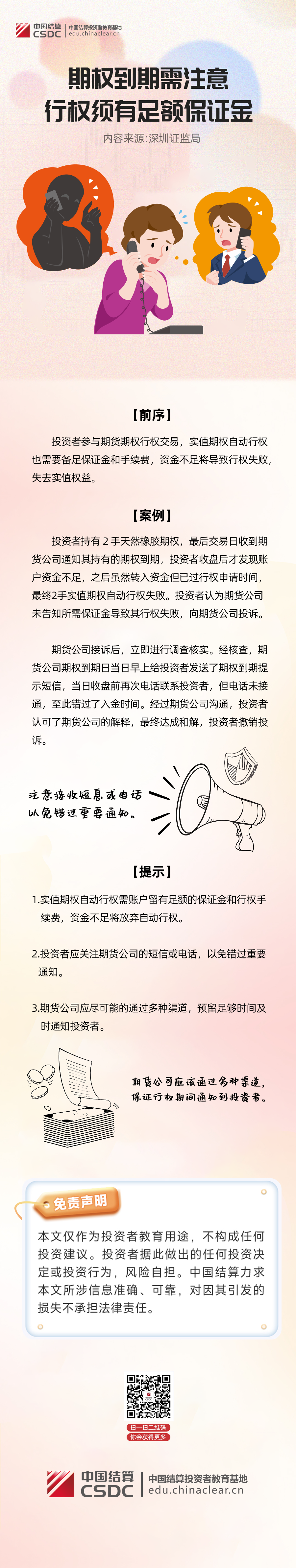 中国结算投教 | 期权到期需注意,行权须有足额保证金