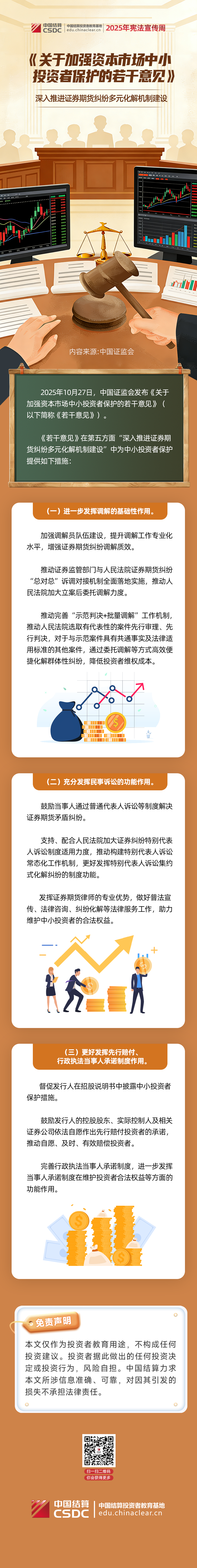 中国结算投教 |《关于加强资本市场中小投资者保护的若干意见》深入推进证券期货纠纷多元化解机制建设