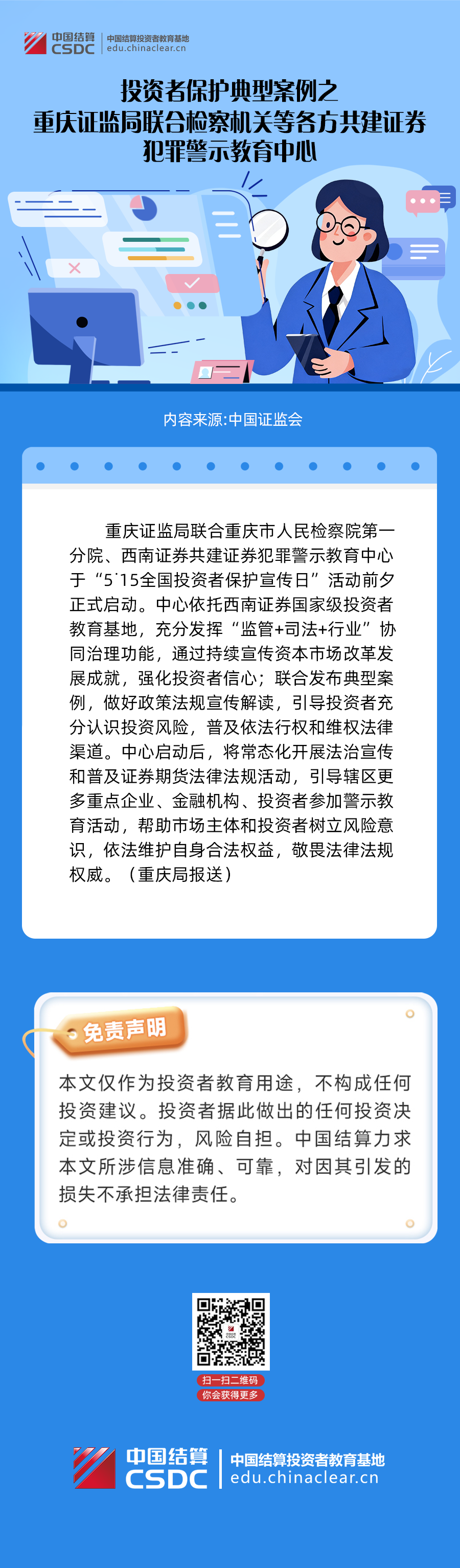 中国结算投教 | 投资者保护典型案例之重庆证监局联合检察机关等各方共建证券犯罪警示教育中心