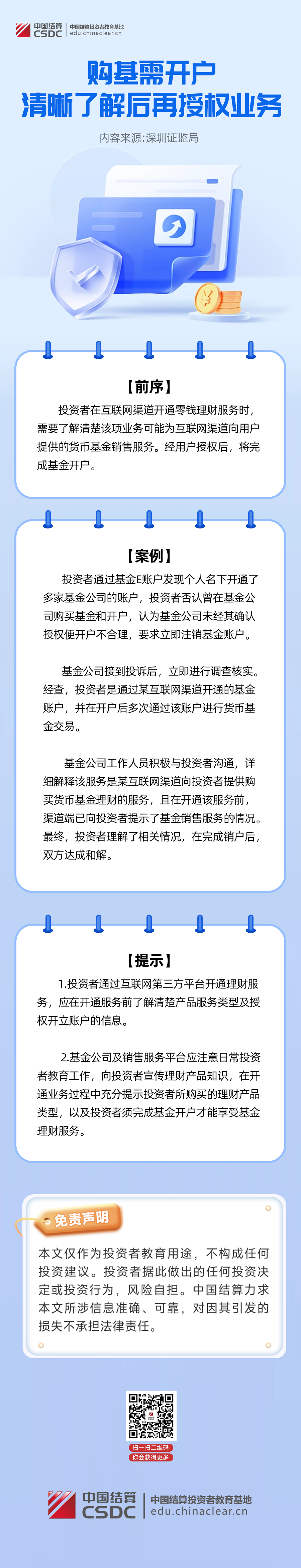 中国结算投教 | 购基需开户 清晰了解后再授权业务