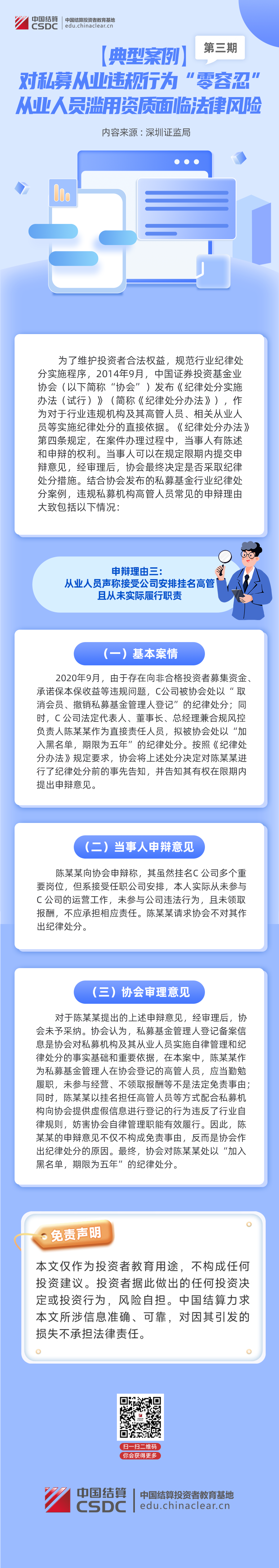 中国结算投教 | 【典型案例】对私募从业违规行为“零容忍” 从业人员滥用资质面临法律风险 第三期