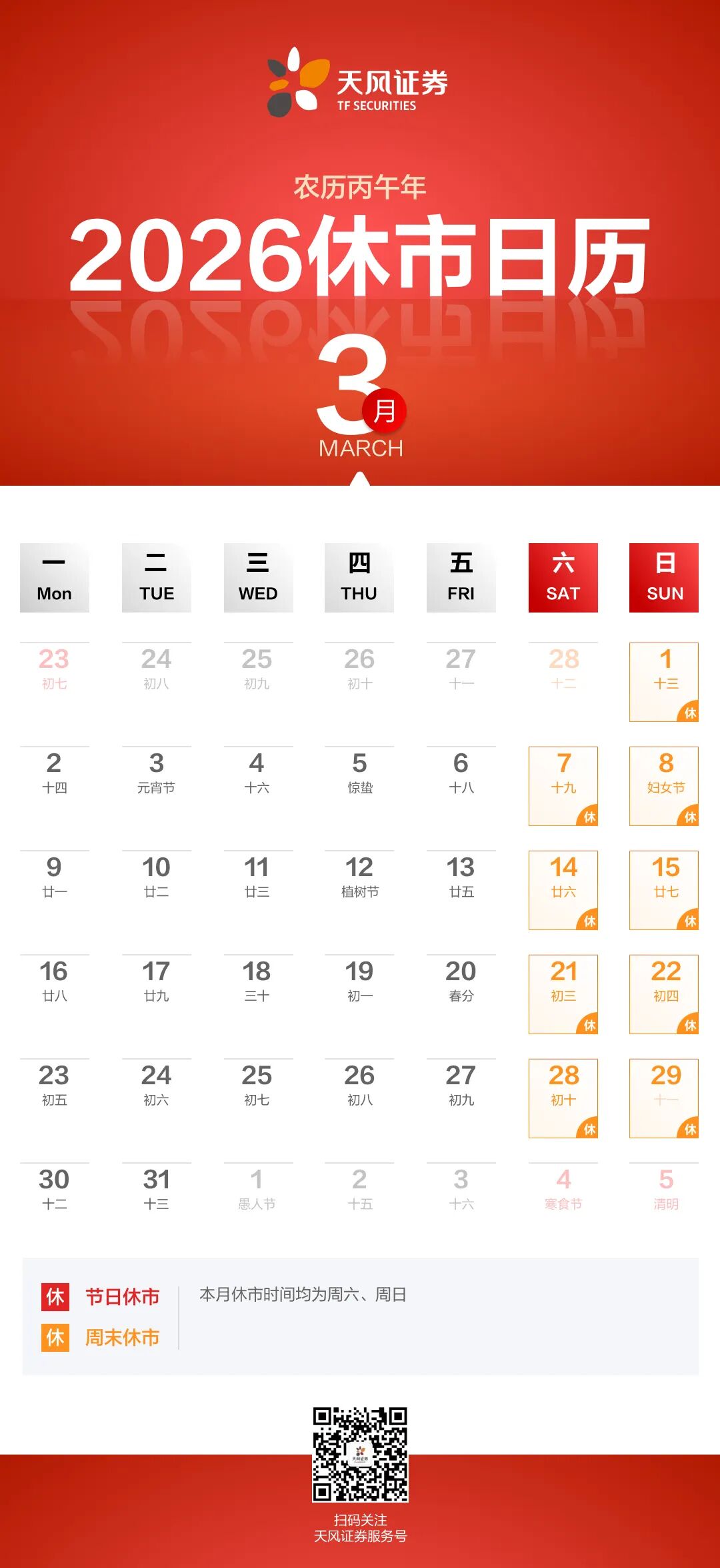 2026年已经到来 相信大家一定很关心新一年的休市安排 按照惯例 献上新年休市日历 左划继续查看全年休市日历 2026年的休市日依然是约占全年天数的1/3 各位同学可提前做好规划 从容地面对新一年的机遇和挑战