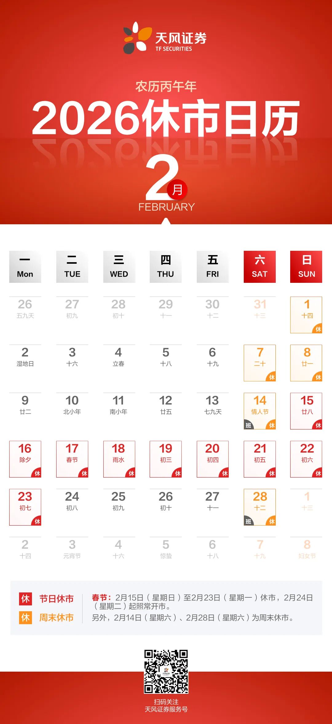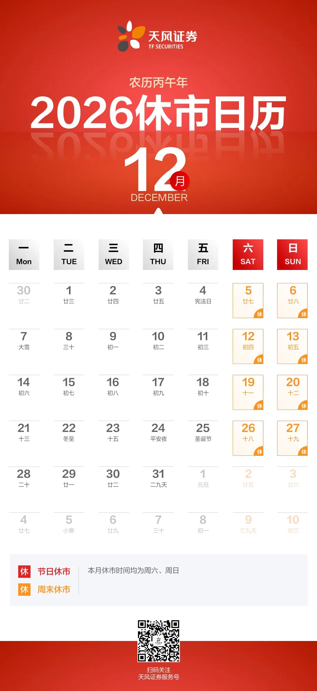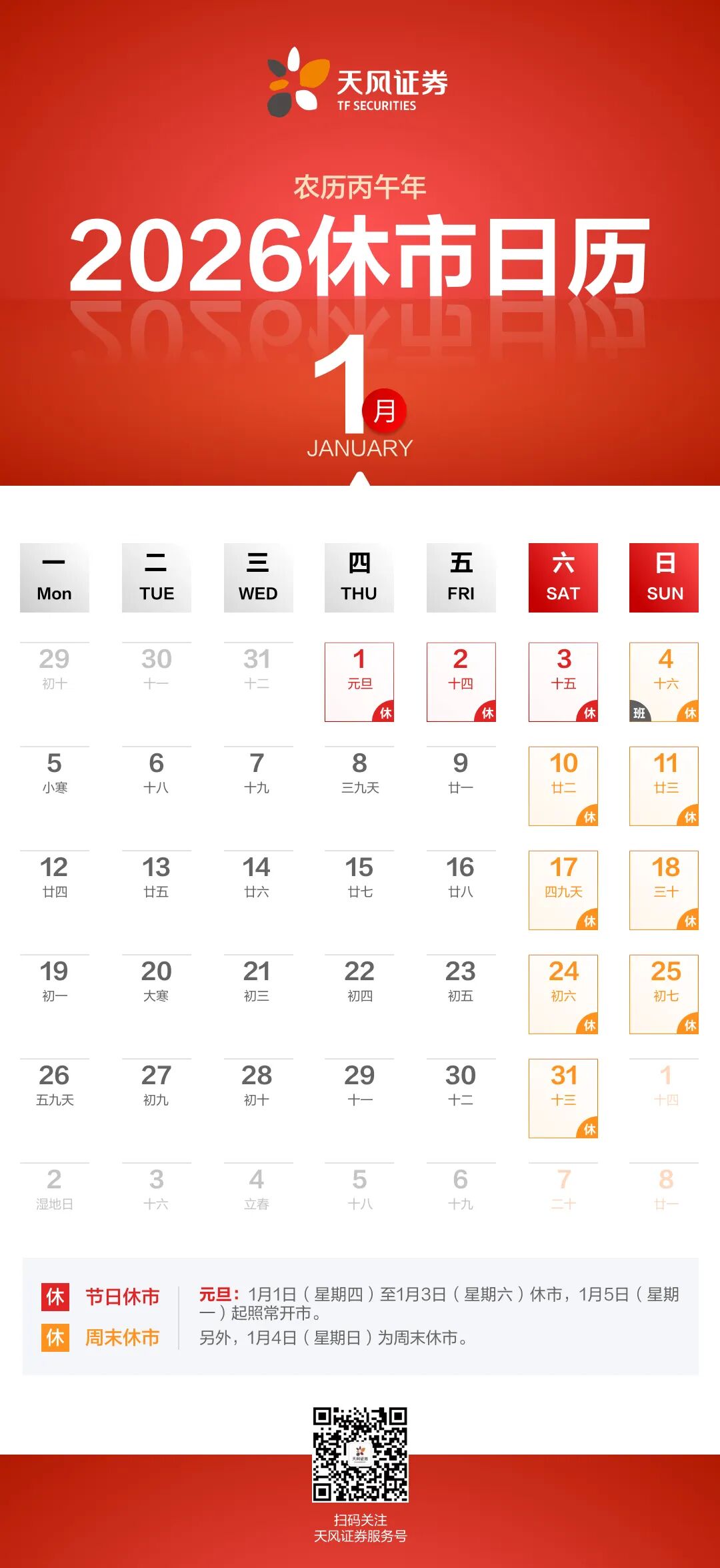 按照惯例 献上新年休市日历
