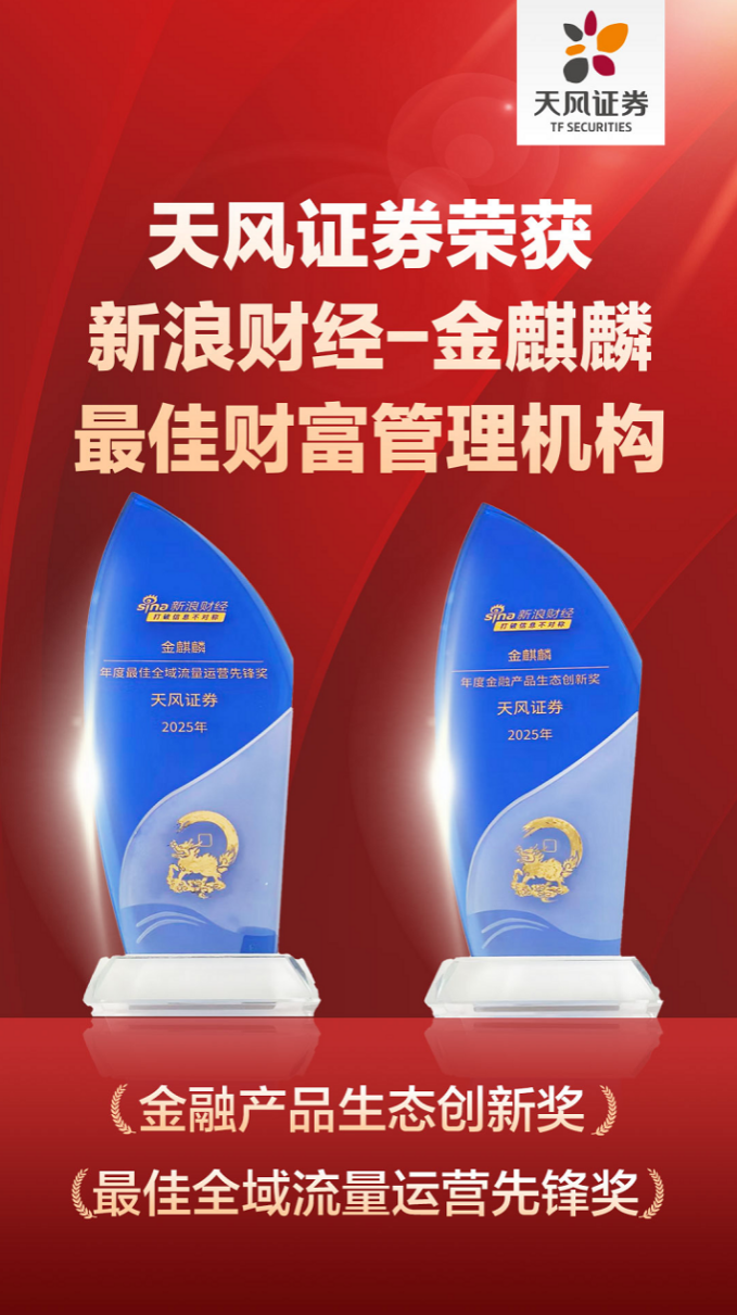 1月15日,由新浪财经举办的金麒麟·2026全球与中国资本市场展望论坛在北京落幕,论坛同时揭晓了2025年度最佳财富管理机构荣誉奖项。天风证券凭借在金融产品、投教服务以及围绕ETF业务打造的数字化运营生态体系等方面的践行获得媒体及行业高度认可,荣获“年度金融产品生态创新奖”及“年度最佳全域流量运营先锋奖”。 作为金麒麟最佳财富管理机构盛典中的重要奖项之一,“年度金融产品生态创新奖”旨在表彰突破传统渠道,在金融产品服务生态构建、模式创新、数字运营等方面表现突出的机构;而“年度最佳全域流量运营先锋奖"则鼓励机构超越单一产品销售,转向ETF产品筛选与投教陪伴一体化的生态构建。天风证券始终秉持“以客户为中心”的服务理念,围绕ETF业务构建起投教赋能的科学数字化运营生态体系,实现了从“产品筛选”“投资者教育及服务”“资产配置解决方案”的升级。 在财富管理业务方面,天风证券持续以投资者服务与陪伴为切入点,通过多元化的内容矩阵和创新运营策略,打造了高质量、高热度的短视频生态矩阵,通过公众号、抖音及微信视频号等公私域平台,围绕财经热点、热门板块、指数工具、资产配置等主题进行原创讲解,此外,还制作投放了包括视频、图文、海报、原创漫画等多种形式的投教产品,使专业的金融知识变得生动易懂,有效提升投资者投资能力,实现了客户服务与品牌影响力的双提升。 下一步,天风证券将持续深化财富管理业务数字转型,以专业研究为支撑、以投资者教育与服务为纽带,持续依托数字化工具以及运营举措,进一步提升财富管理的服务效率与投资者体验。