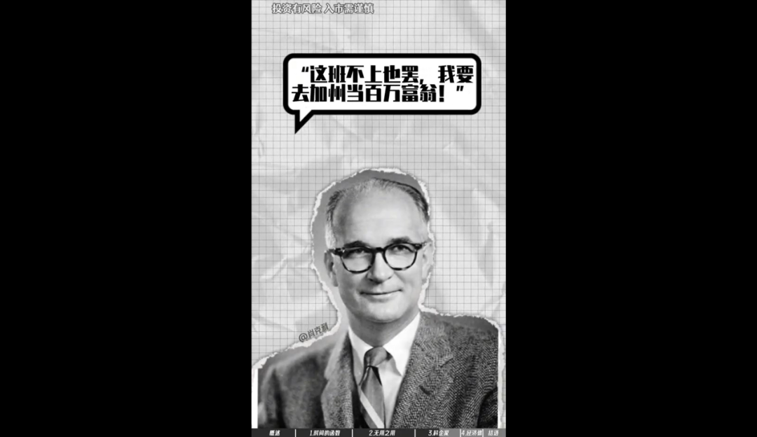 比如,肖克利在贝尔实验室发明了晶体管,专利归公司,他只得到1美元象征性奖励。所以当新技术出现,他立马拍板:“这班不上也罢,我要去加州当百万富翁!”