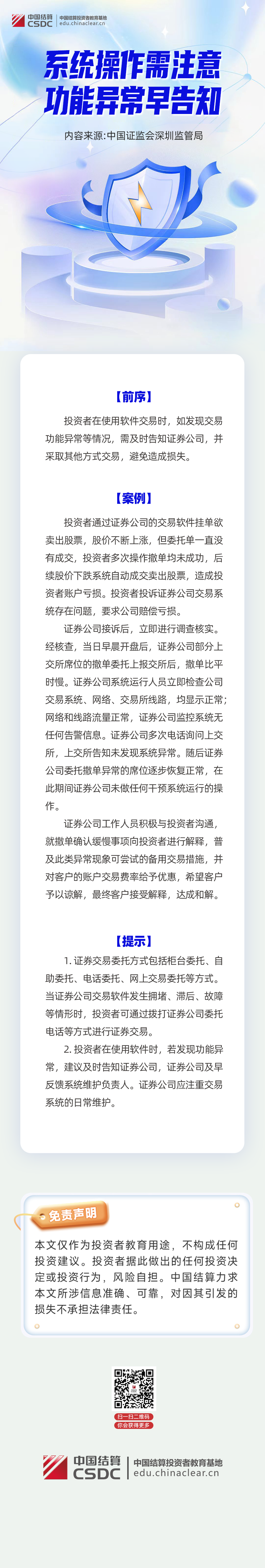 中国结算投教 | 系统操作需注意 功能异常早告知