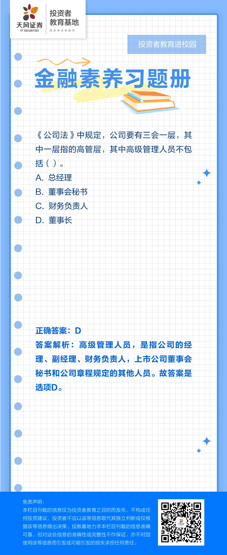 投教进校园 | 金融素养习题册(109)