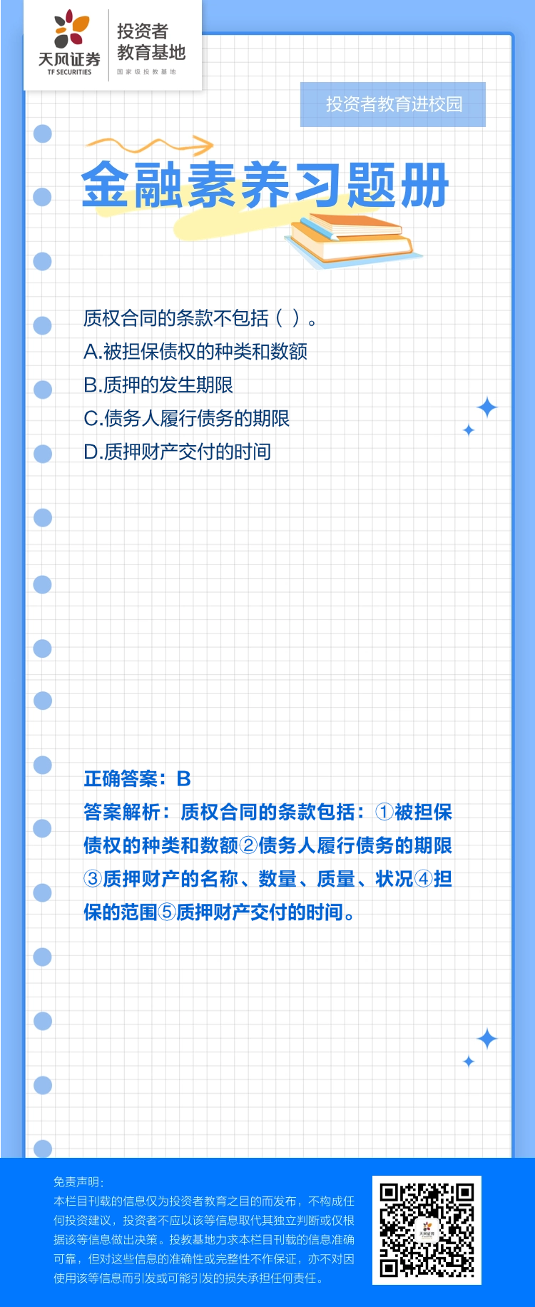 投教进校园 | 金融素养习题册(113)
